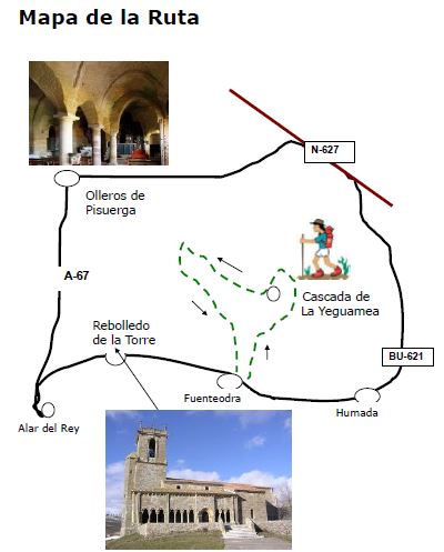 El descanso y la comida lo hacemos en Humada y la vuelta por la BU621 hacia Aguilar, pasando Fuencaliente de Lucio nos desviamos a la izda., hacia Olleros de Pisuerga, al final del pueblo se encuentra una de las mejores ermitas rupestres de España, para visitarla hay repetir la búsqueda de la señora en el pueblo, merecerá la pena.