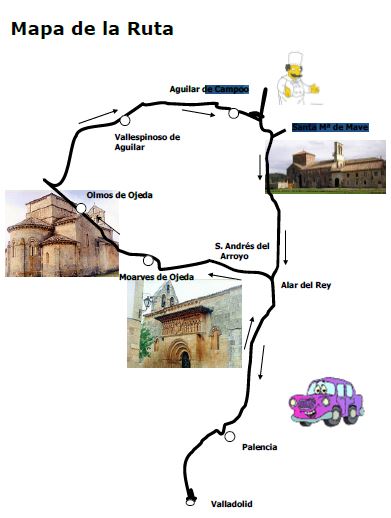 Retomamos la carretera a Cervera para parar en Moarves de Ojeda, la iglesia posee en su fachada un friso muy interesante, continuamos hacia Olmos de Ojeda donde en una finca particular (casa rural), se conserva y se puede visitar, una iglesia del s. XII del antiguo monasterio femenino de Santa Eufemia de Cozuelos.