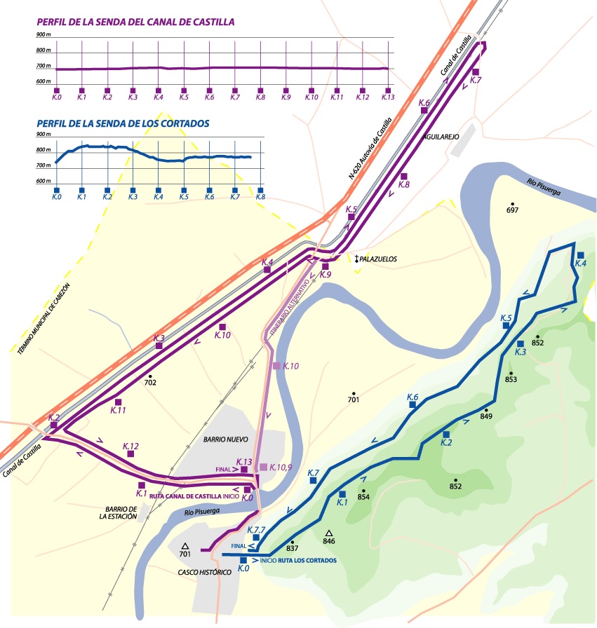 Aprovechando el aniversario del Canal de Castilla, Cabezón nos ofrece otra ruta natural: la Senda del Canal de Castilla, mas larga, mas sencilla y con la posibilidad de visitar el monasterio de Palazuelos y la granja de Aguilarejo, esta tiene una serie de casas de aparceros y alguna construcción de los años 20, en la plazoleta de estas casas hay un monolito de los tiempos de la guerra civil que recuerda donde estaba el aeródromo que usaba el general Mola en sus visitas a Valladolid. Todavía no existían las pistas de Villanubla.