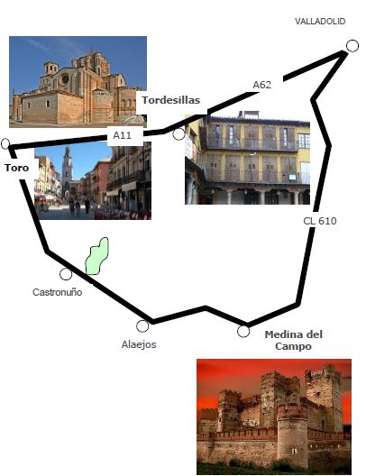 Sobre todo destacar la colegiata de Santa Ma-ria la Mayor del siglo XIII, en la sacristía esta el cuadro de la Virgen de la Mosca – preguntar donde venden los dulces de las monjas, son muy buenos-, un descanso para comer con un vaso de vino de Toro y continuamos a Tordesillas por la A66.